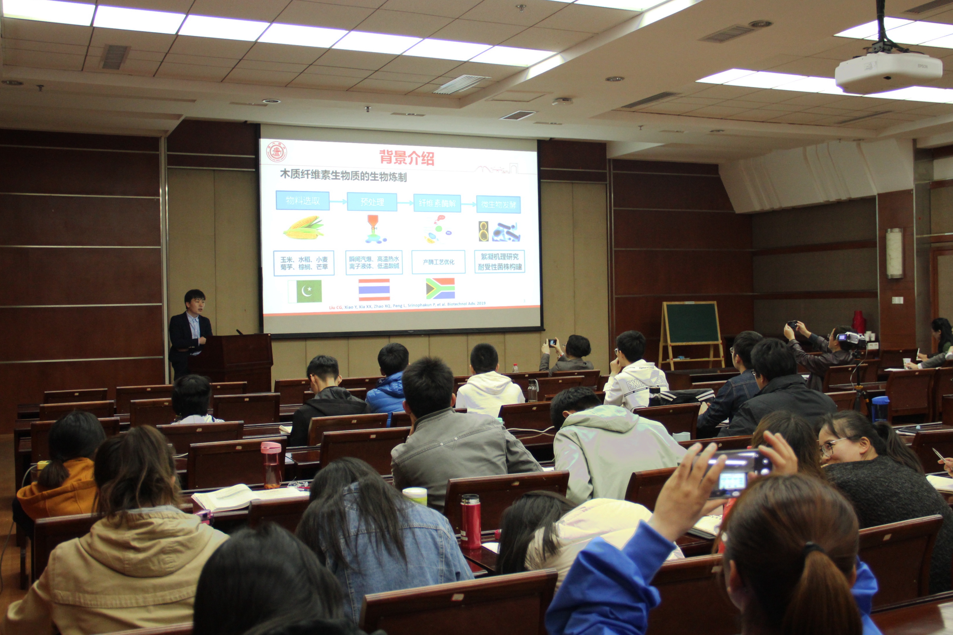 两位教授的精彩报告使同学们对于木质纤维素乙醇研究有了更进一步的认识,报告结束后同学们争先恐后地就自己研究内容向两位教授请教,两位教授为同学们进行详细而生动的解答。