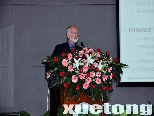 高翅致欢迎辞后,彭良才述说了生物能源的发展前景和我校近年生物能源的研究进展。接着Neal Gutterson博士介绍了孟德尔公司在能源植物生物技术方面的开发利用情况,重点阐述了芒草作为能源植物的应用前景。奥冠实业有限公司董事长耿斌也介绍了我校生物质与生物能源研究中心和奥冠企业在生物燃料开发方面的合作情况。