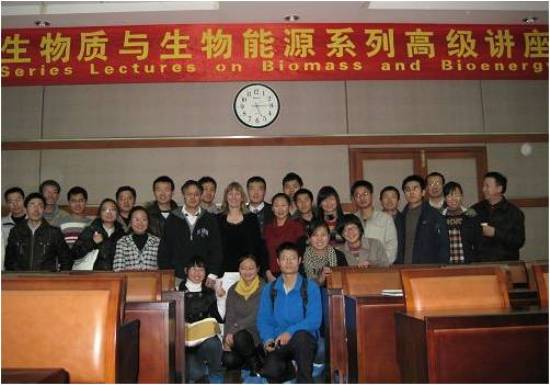生物质与生物能源系列高级讲座及交流之一 ——美国佐治亚大学Debra Mohnen博士应邀来我校交流访问 继狮子山讲坛后,美国佐治亚大学Debra Mohnen博士在我校进行了进一步的交流访问。Debra Mohnen博士先后与中国工程院院士傅廷栋、微生物农药国家工程研究中心主任喻子牛、生物质及生物质能源中心主任彭良才以及华中科技大学教授张晓昱等就植物细胞壁与生物质能的关系,木质纤维乙醇生产的主要障碍和解决途径以及果胶质的组成,生物合成和功能等相关学术问题进行了深入的交流。期间,Debra Mohnen博士对作物遗传改良国家重点实验室,微生物农药国家工程研究中心,校史馆,实验田等地进行了参观访问,并为广大师生作了一场题为 “Plant cell wall biosynthesis ,bioenergy and bioproducts where three roads meet”的学术报告,对我校生物质能源领域的发展提出了很多宝贵的意见。