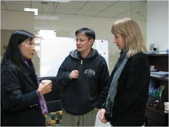 Debra Mohnen,彭良才以及张晓昱三位博士一起讨论生物质能