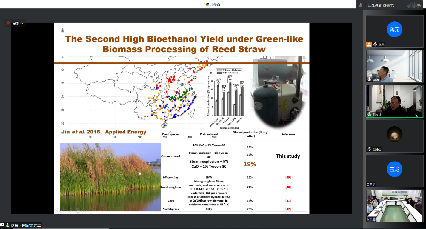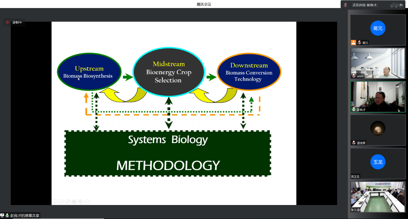 首先彭良才老师对学科交叉卓越团队表示出极高的评价和浓厚的兴趣。接下来,彭老师以研究室标志为切入点开始报告,植物进行光合作用,产生并储存能量。除种子、果实等能量器官外,秸秆等生物质材料中的能量也占整个植物中很大部分。中国目前生物质材料面临数量少、质量低等实际问题,故发展生物质能源是未来绿色农业发展的新方向。同时,彭老师也提出了产量影响小、秸秆生物量提高与遗传操作简单为指导的优良生物质品种选育标准。