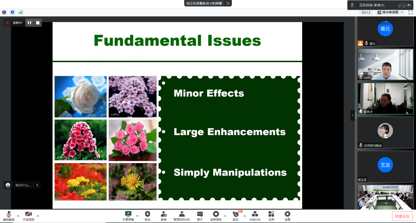 本次学术报告采用腾讯会议+视屏直播的方式进行,参会近4000人次。此次报告中彭良才研究员就大家提出的科研问题进行了悉心解答。本次报告会,加深了与会人员对纤维素结构与生物质概念的理解, 使参会的各领域科研工作者受益匪浅,营造了良好的学术交流与学习氛围,也为学科交叉卓越团队迅速发展提供了助力。