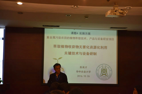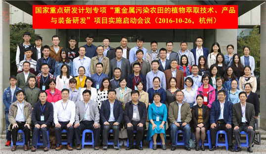 2016 年 10 月 26 日,国家重点研发计划专项——“重金属污染农田的植物萃取技术、产品与装备研发”(2016YFD800800)项目实施启动会议在浙江省杭州市浙江大学紫金港校区顺利召开。我实验室彭良才教授、夏涛副教授出席了此次会议。项目课题4——“萃取植物收获物无害化资源化利用关键技术与设备研制”由彭良才教授主持。