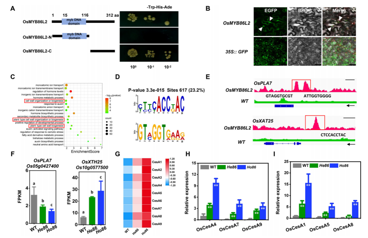 图1 OsMYB86L2参与调节纤维素合酶基因OsCesAs的表达
