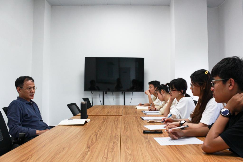 座谈会伊始,彭良才带领学生参观了A508实验室,为大家介绍相关实验器械和原理,使同学们对该实验室的环境与构造有了初步的认知。